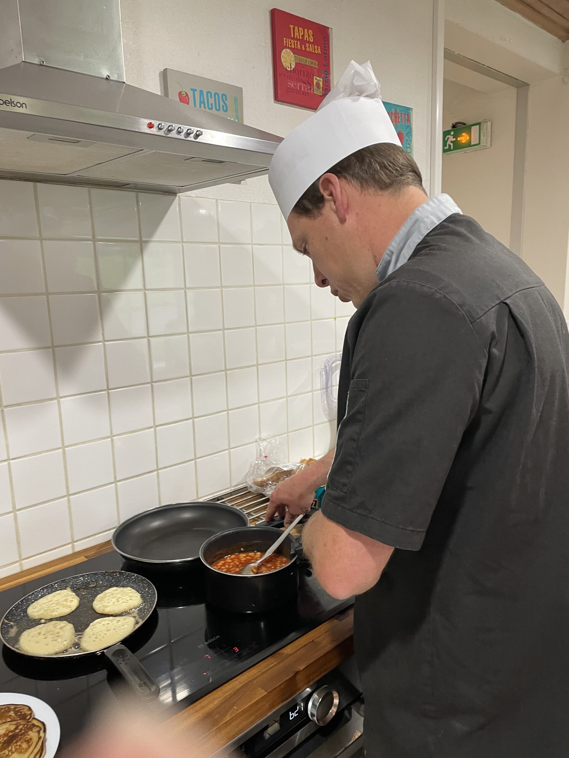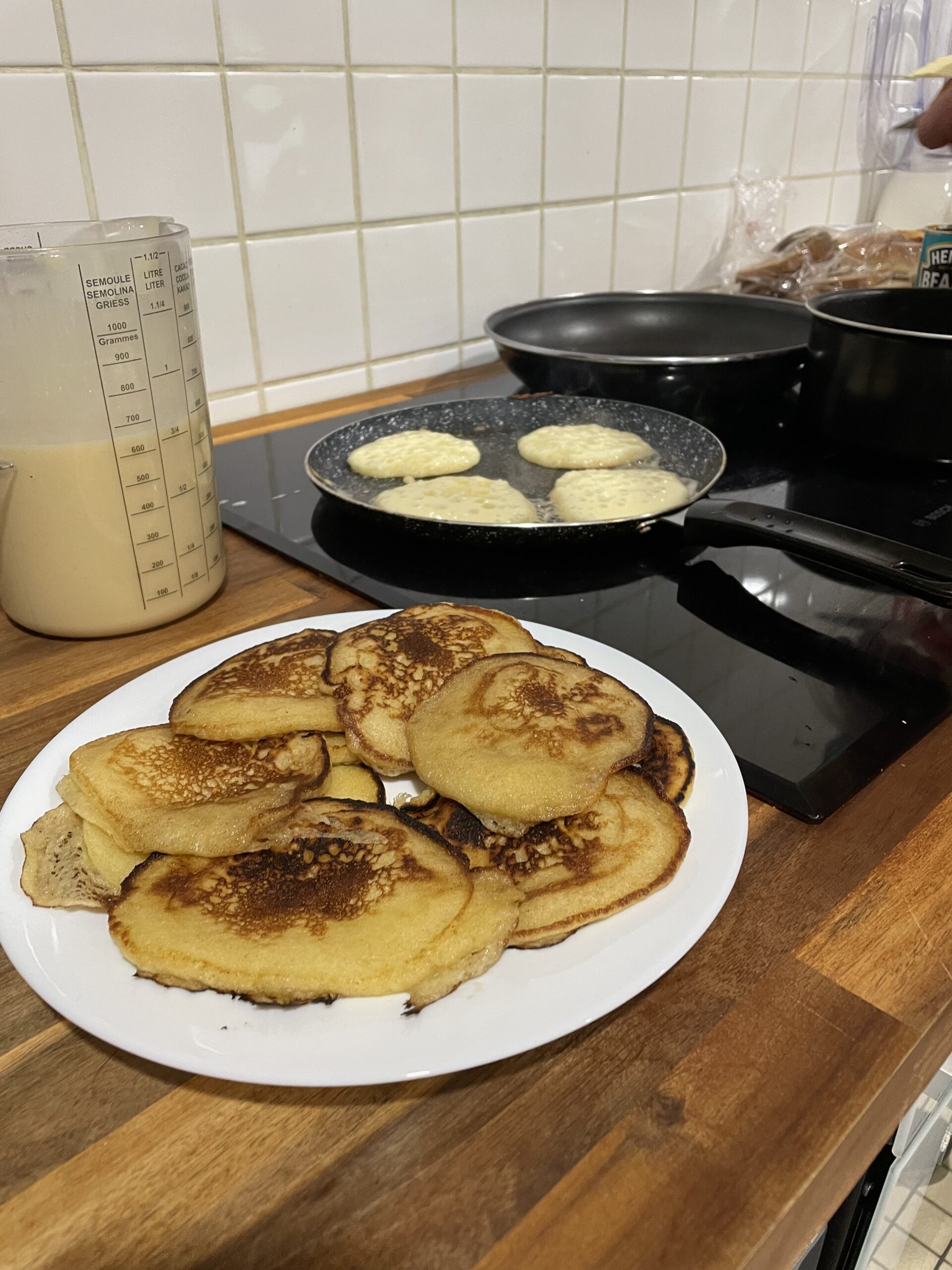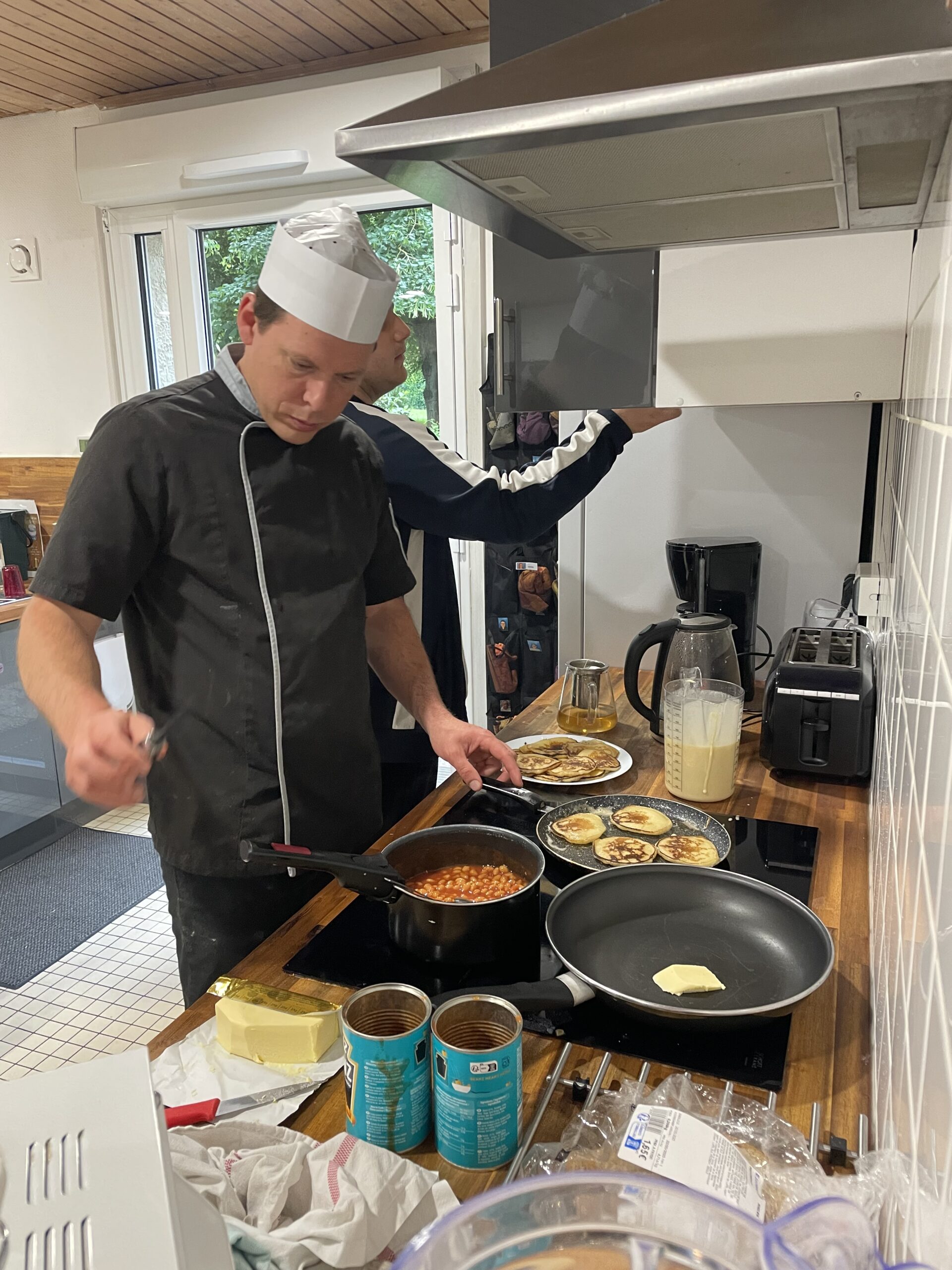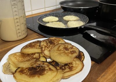 Vincent a cuit les pancakes, de délicieuses petites crêpes épaisses, ainsi que des œufs brouillés.