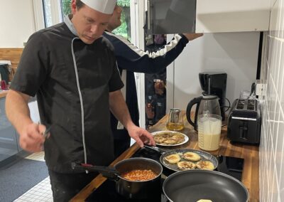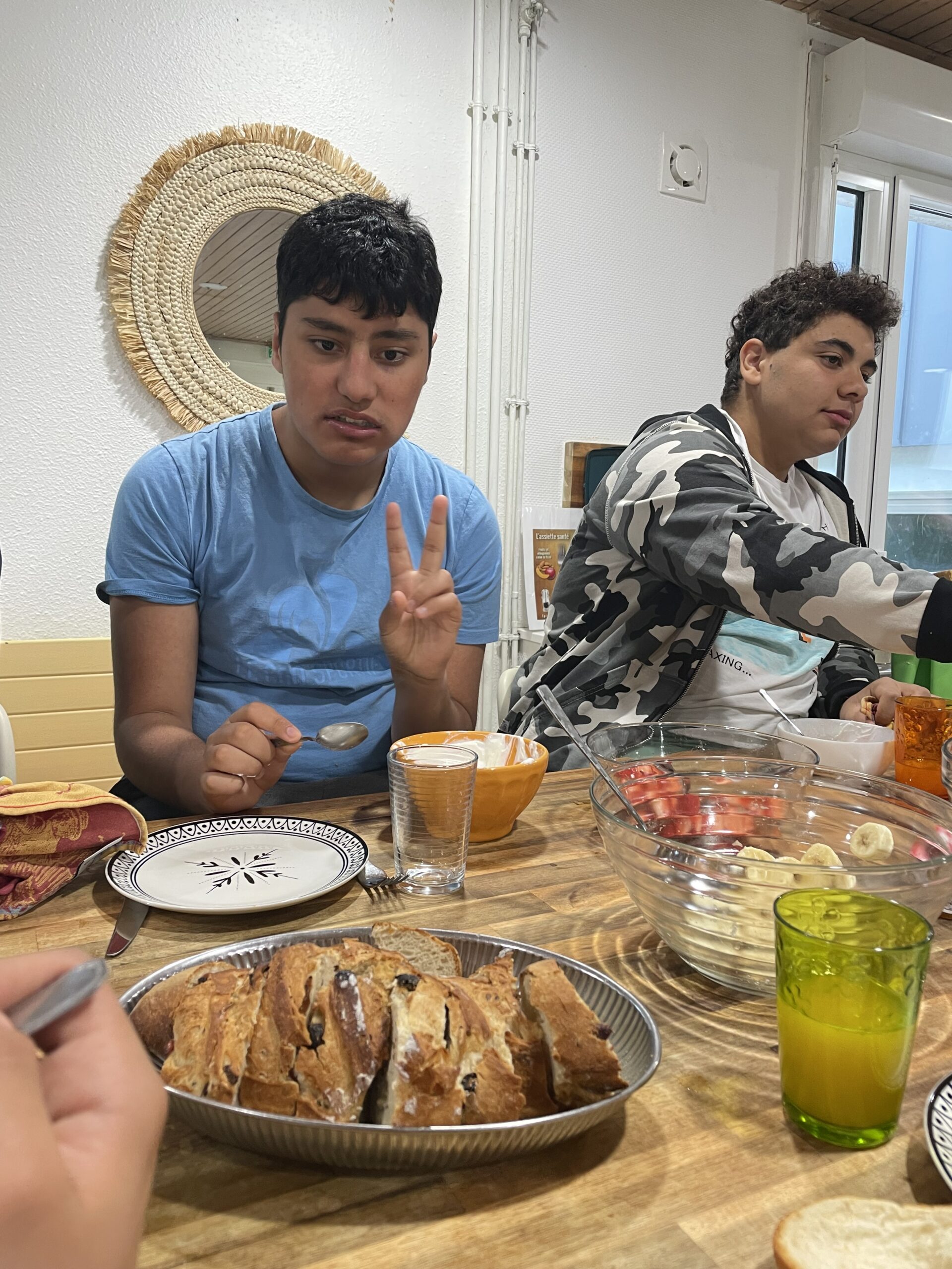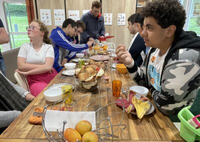 Mercredi 21 mai, à l’internat, Vincent le cuisinier et Barbara l’infirmière sont venus préparer avec nous un petit déjeuner anglais.