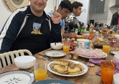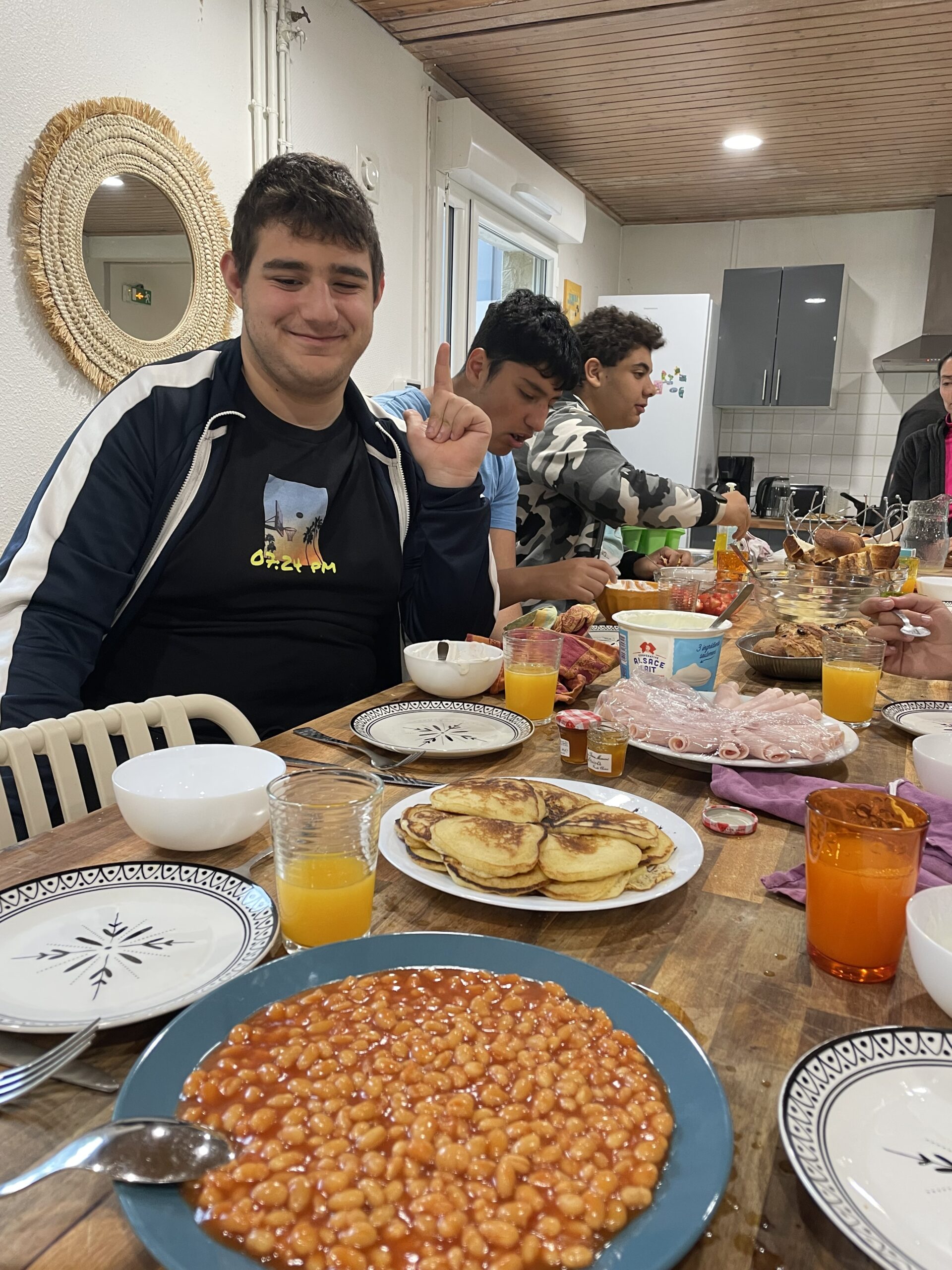 Il y avait aussi Damien le psychologue et Jennifer, la responsable de la plateforme qui étaient invités à petit déjeuner avec nous.