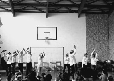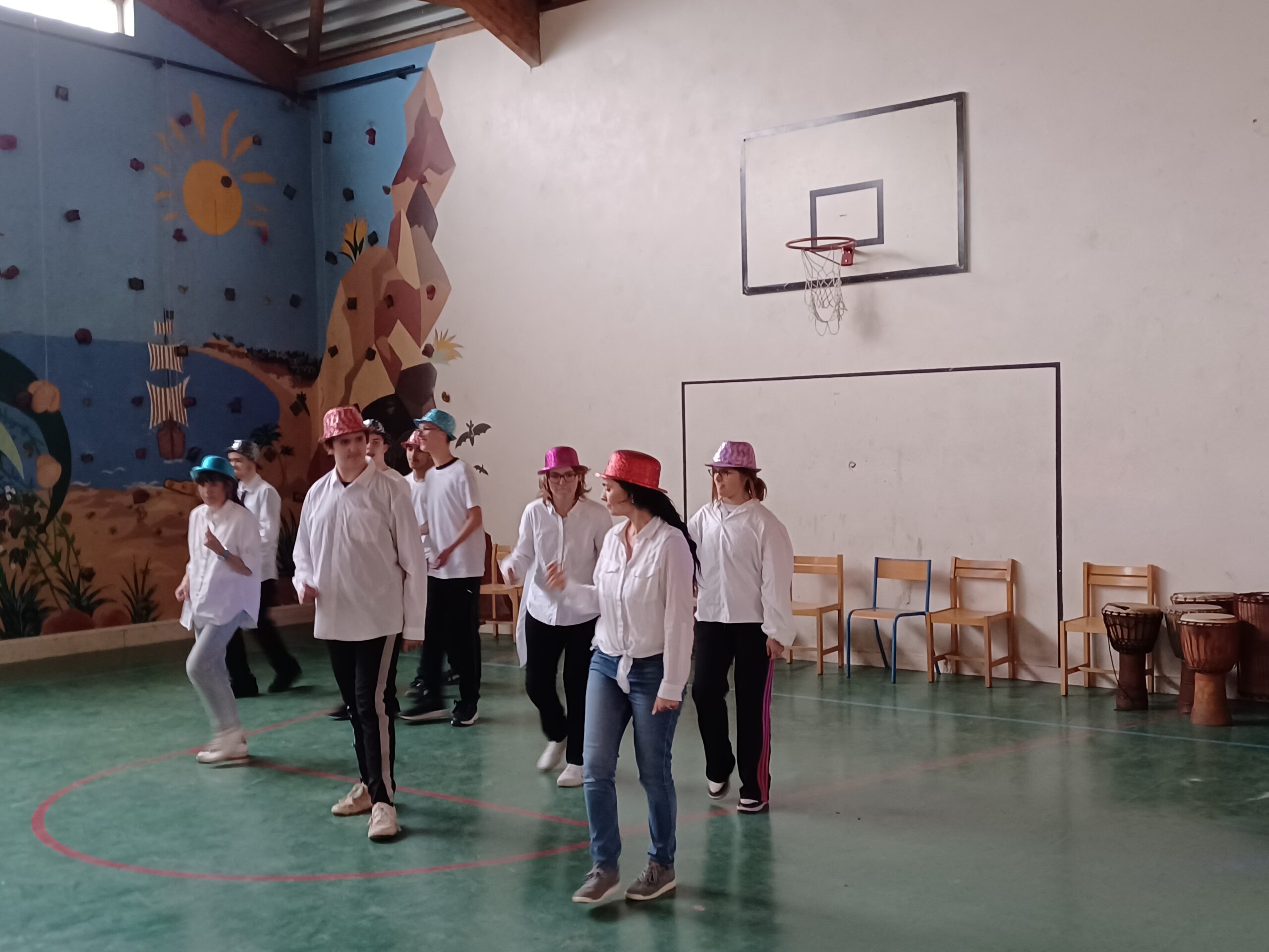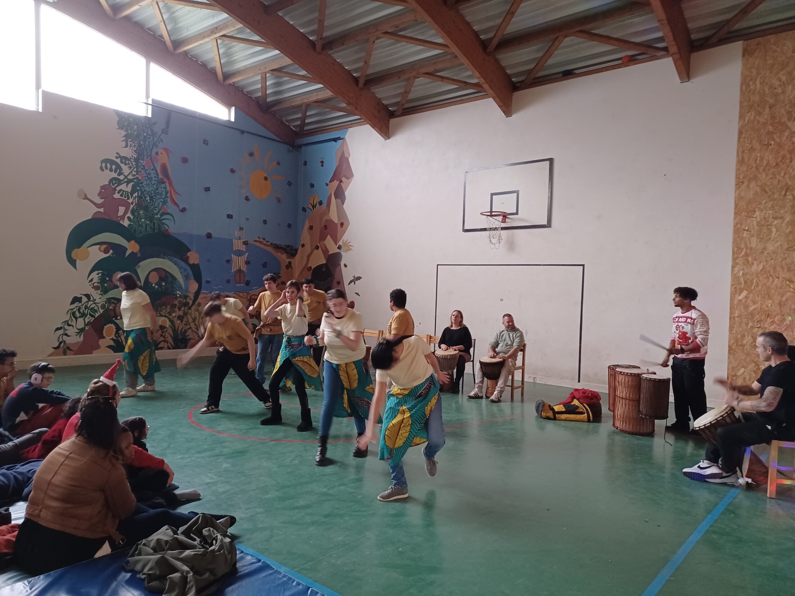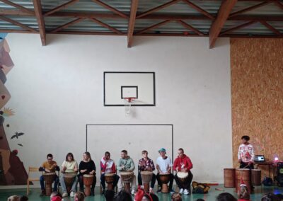 Ensuite, nous avons assisté au spectacle proposé par plusieurs groupes : on a eu de la musique africaine (atelier djembés), et on a vu de la danse !