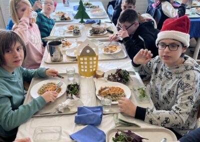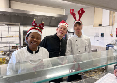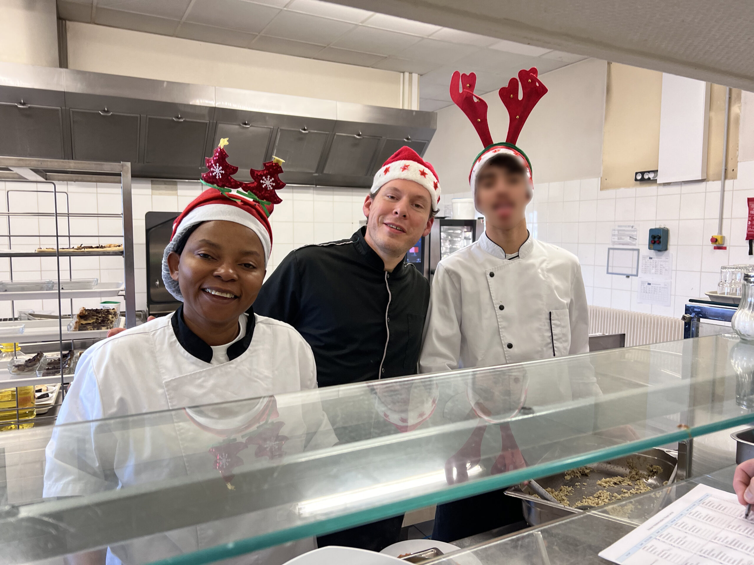 Vincent et Marie, nos deux cuisiniers aidés du jeune stagiaire du lycée hôtelier Rabelais nous ont concocté un délicieux repas de fête !