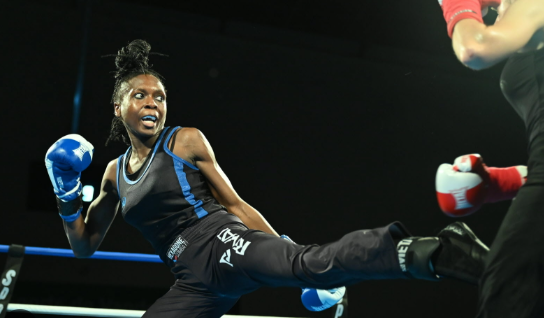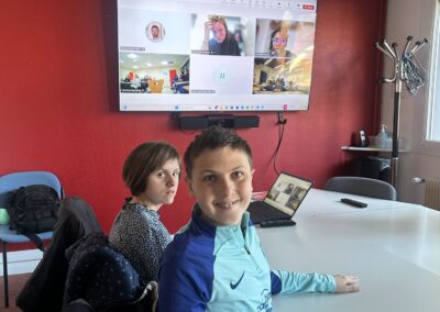 Aidés par deux éducateurs, nous avons pu interviewer, en visio, une grande championne de boxe française :