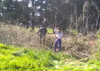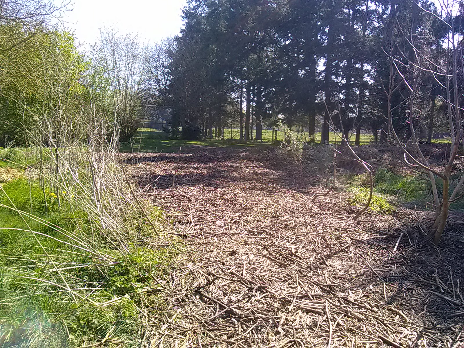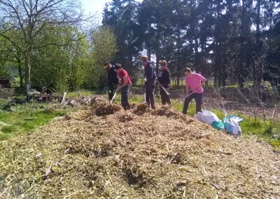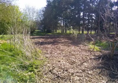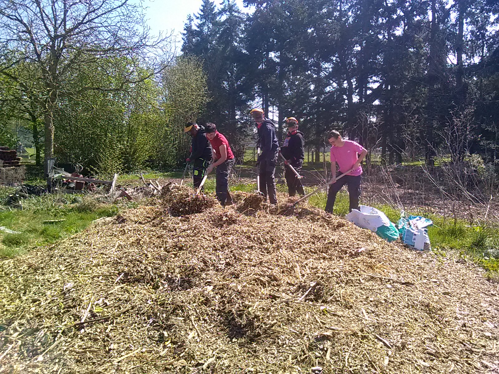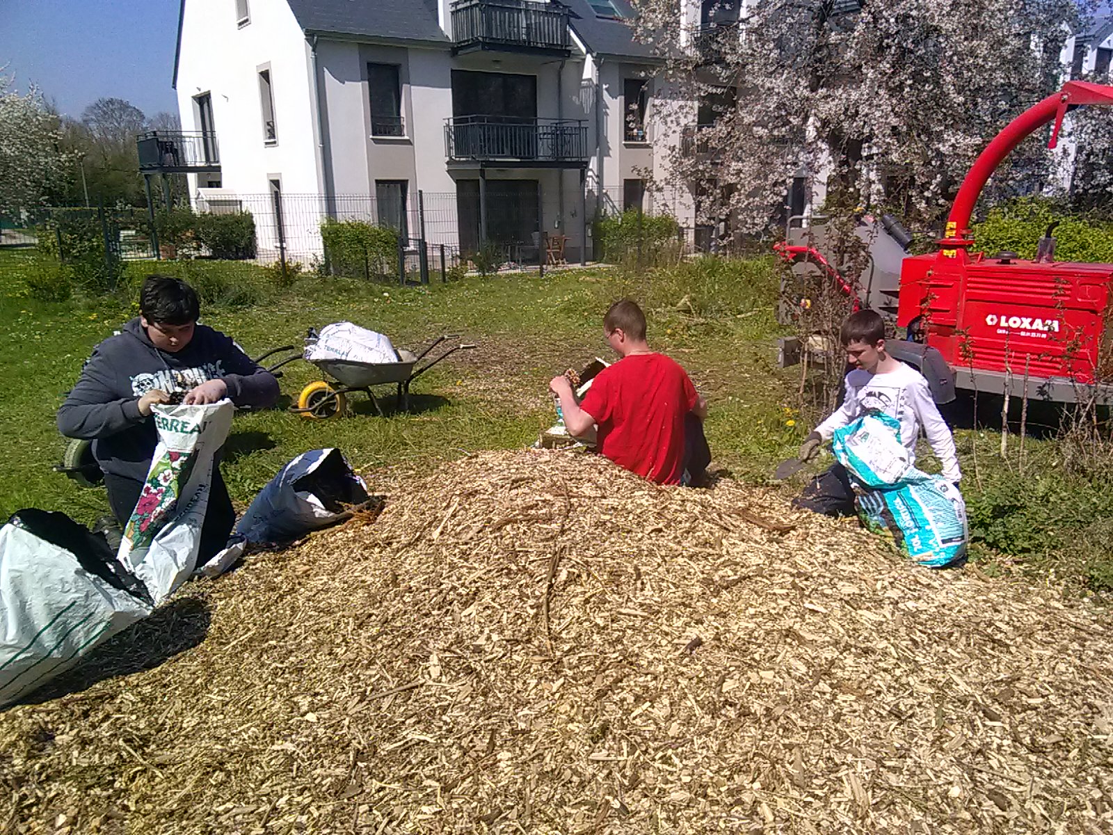 Lors de nombreux chantiers extérieurs, les déchets verts sont versés dans un endroit dédié au compostage. Certaines matières sont transformées en terreau pour les travaux de la serre, et des branchages ont été entreposés sur le site du D.A.Re. de Fleury-sur-Orne.
